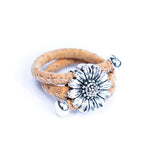Eco-friendly adjustable cork ring with a vibrant 3mm cord and an elegant chrysanthemum pendant. Handmade, lightweight, and perfect for daily wear or special occasions. A unique, sustainable accessory!